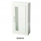 Door and Trim Construction: Cold rolled steel with white powder-coat finish standard. Flush cabinet doors with a 5/8" door stop are attached by a continuous hinge and equipped with zinc-plated handle and roller catch.