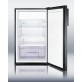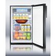 Sized at just under 20" wide, the CM421BL is designed for freestanding use. It has a jet black exterior with a reversible door and top-mounted keyed lock. The manual defrost interior includes adjustable glass shelves, a clear crisper drawer and an ice cube compartment for convenient storage. This unit includes an interior light with an on/off rocker switch.