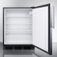 The FF7LBLFRADA is designed for freestanding use. It has a black cabinet with a reversible door handle and factory installed lock. The stainless steel door frame accepts slide-in panels to allow users to match the door front to its setting. This unit is ETL-S listed to NSF-7 standards and is designed for use in commercial establishments.