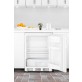 This ETL-S listed unit can be used built-in or freestanding and features a white exterior with a user-reversible door. The 5.5 cu.ft. interior includes adjustable shelves, door storage, a crisper drawer and interior lighting. Automatic defrost saves on maintenance and SUMMITs original ahidden evaporatora creates a seamless interior for easy cleaning.