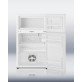 This freestanding unit has a finished white cabinet and slim 19 inch width that fits easily where space is tight. A single combination lock (with key override) secures both the refrigerator and freezer section.