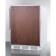 This model has a classic white finish and reversible door for flexible placement. The stainless steel door frame is designed to accept slide-in panels for a customized look to match other cabinetry (panel size: 28 1/16" H x 23 1/16" W). Additional features include interior lighting, a fruit and vegetable crisper, and sturdy door storage, all in a slim 24" width that fits well in limited space.
