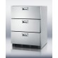 This undercounter refrigerator features three pull-out drawers that glide smoothly for easy access. At just 24" wide and featuring recessed handles, the SP6DS takes up little space but has plenty of storage capacity. Fully finished in stainless steel, it can function as a free-standing or built-in unit in any upscale kitchen.
